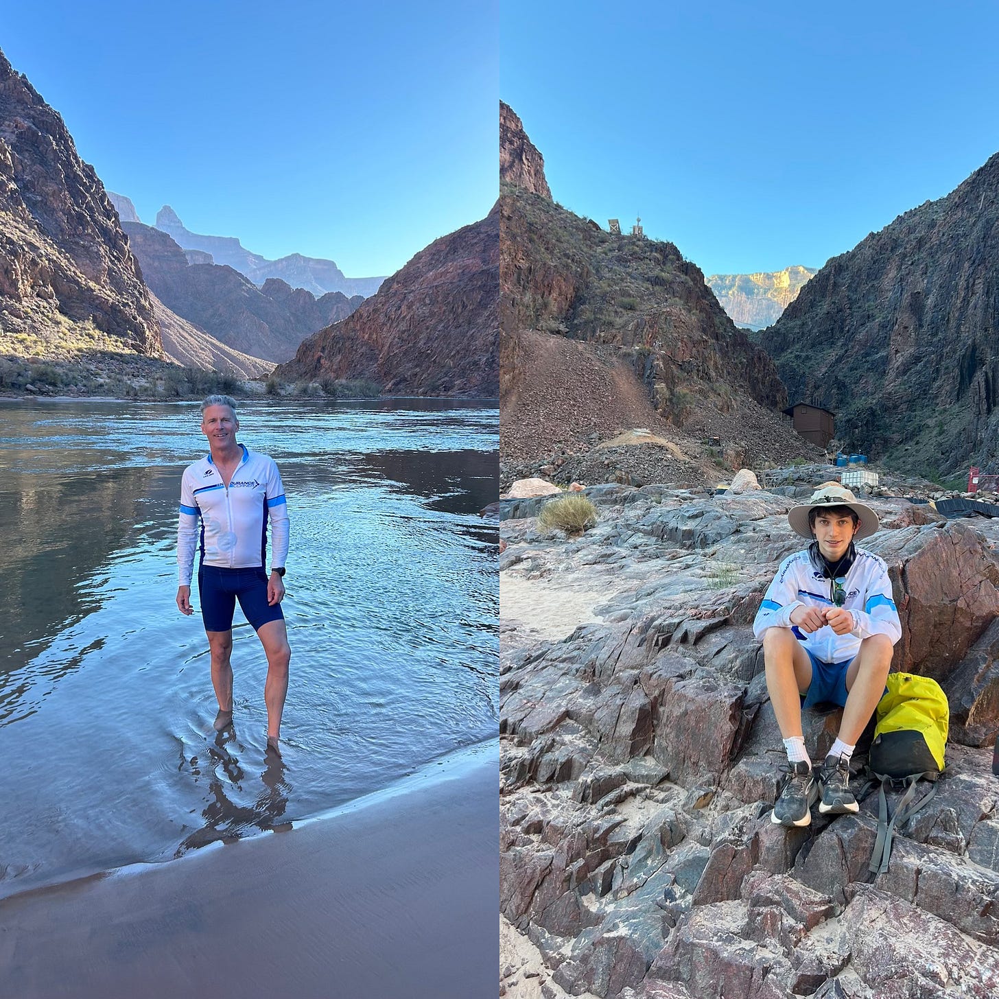 In my mind, it’s an image of my son looking at me. We’re at the bottom of the Grand Canyon. It was 4.5 years since I was last there (2021 article). Axel wasn’t there in 2021, so he doesn’t understand the scale of the turnaround I achieved. My return, stronger, meant more with him as a witness. Sharing the canyon was a bucket list goal, similar to introducing him to the high peaks back home in Colorado.